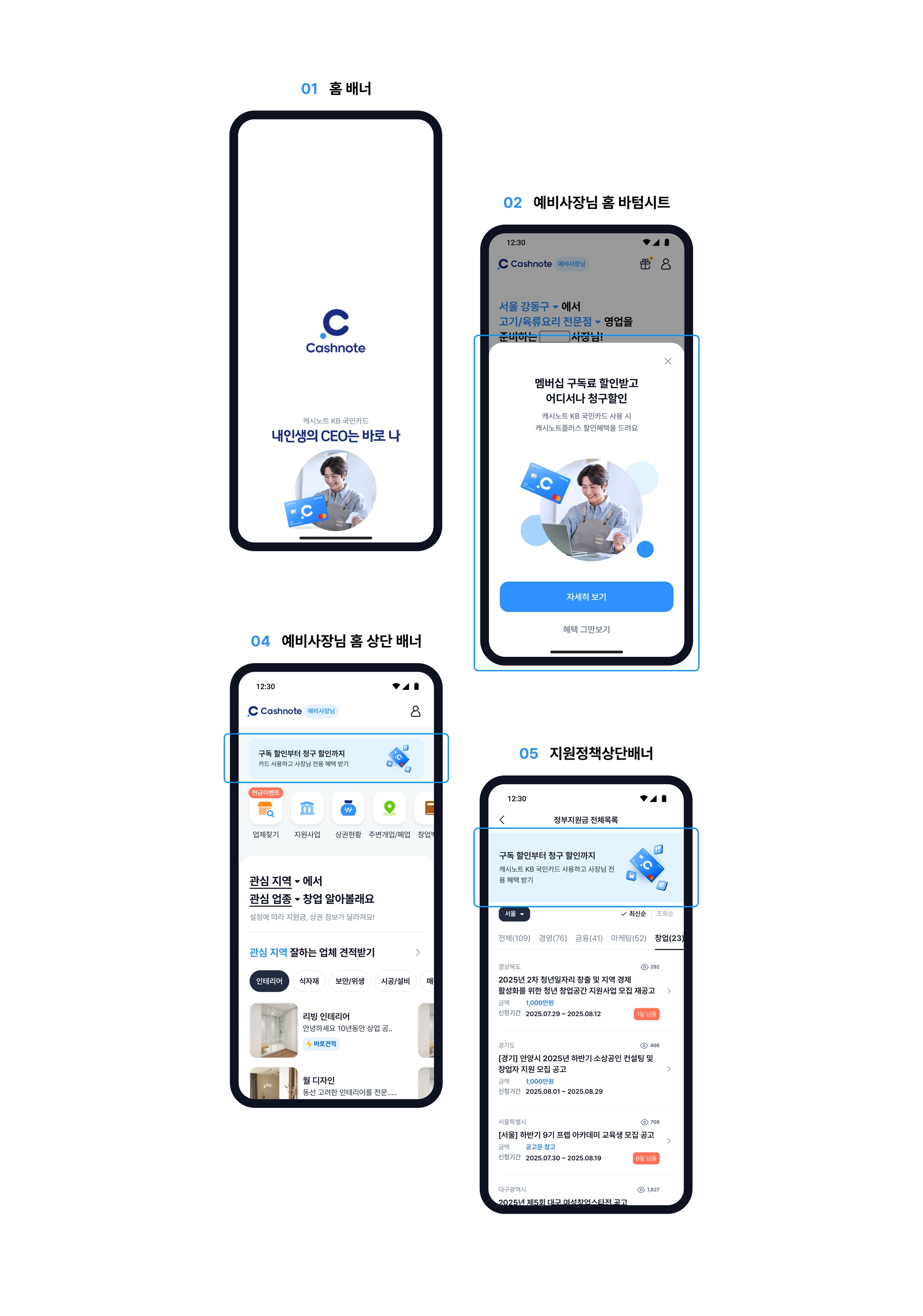 앱 시작 화면 / 예비사장님 지면 (총 4개 지면)